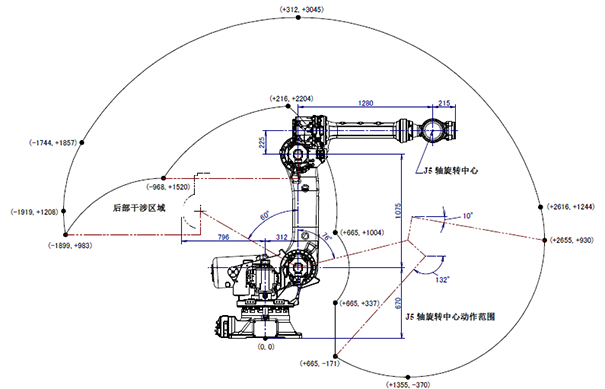 1.R-2000Ic-210F/165F的基本外形尺寸和工作范圍;